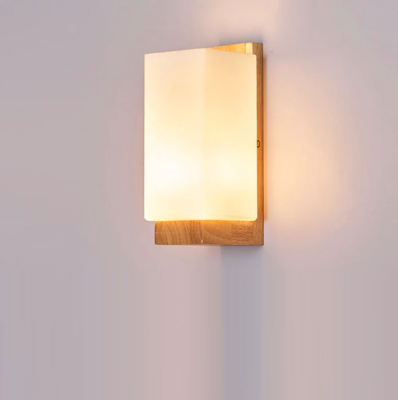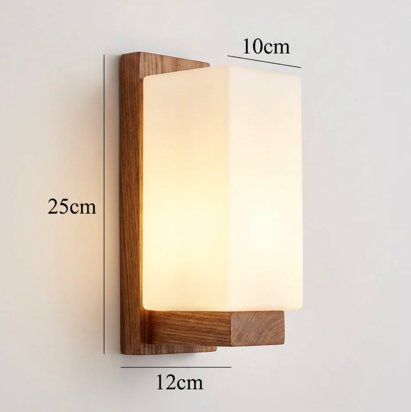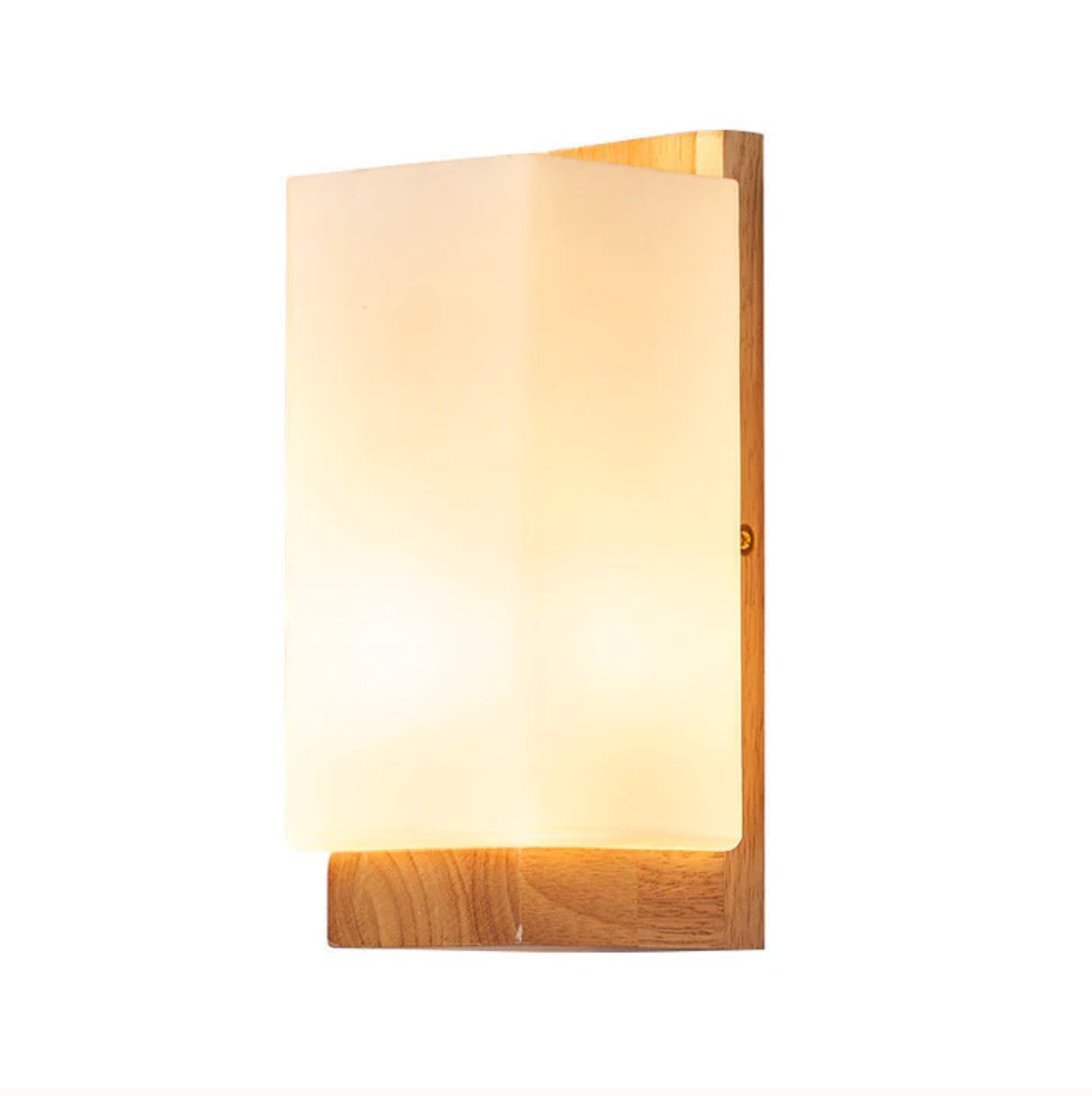 Elegancki kinkiet ścienny łączy naturalne drewno z minimalistycznym, mlecznym kloszem, tworząc harmonijne i przytulne oświetlenie wnętrza. Prosta, geometryczna forma doskonale wpisuje się w nowoczesne aranżacje, podkreślając ciepły charakter pomieszczenia.