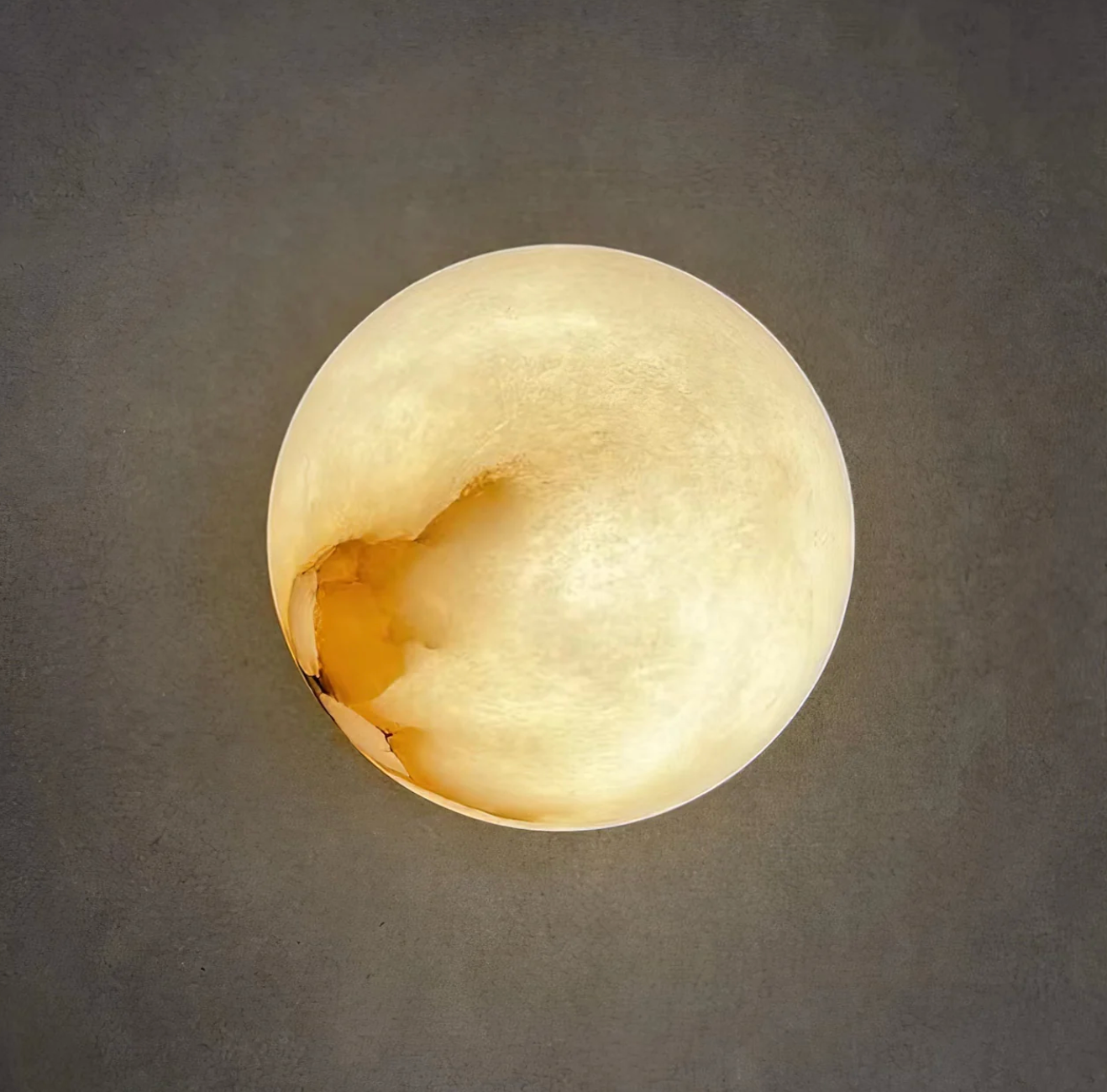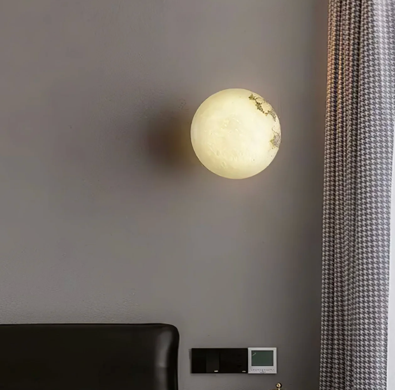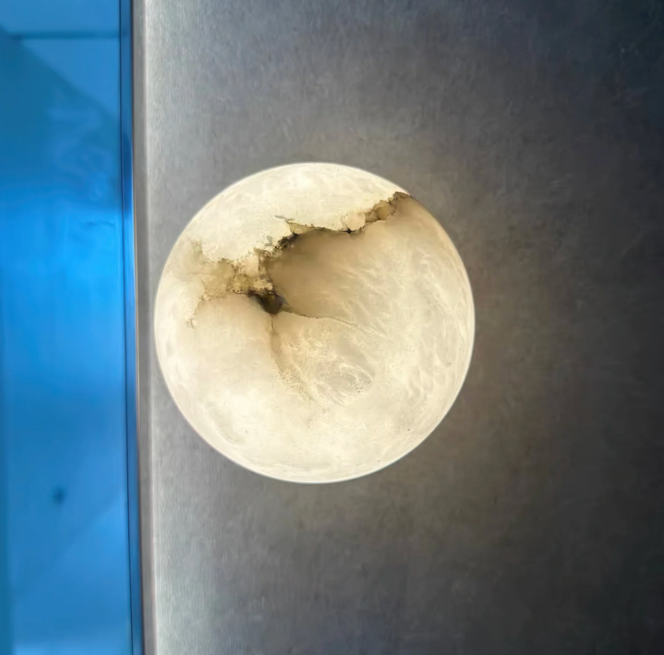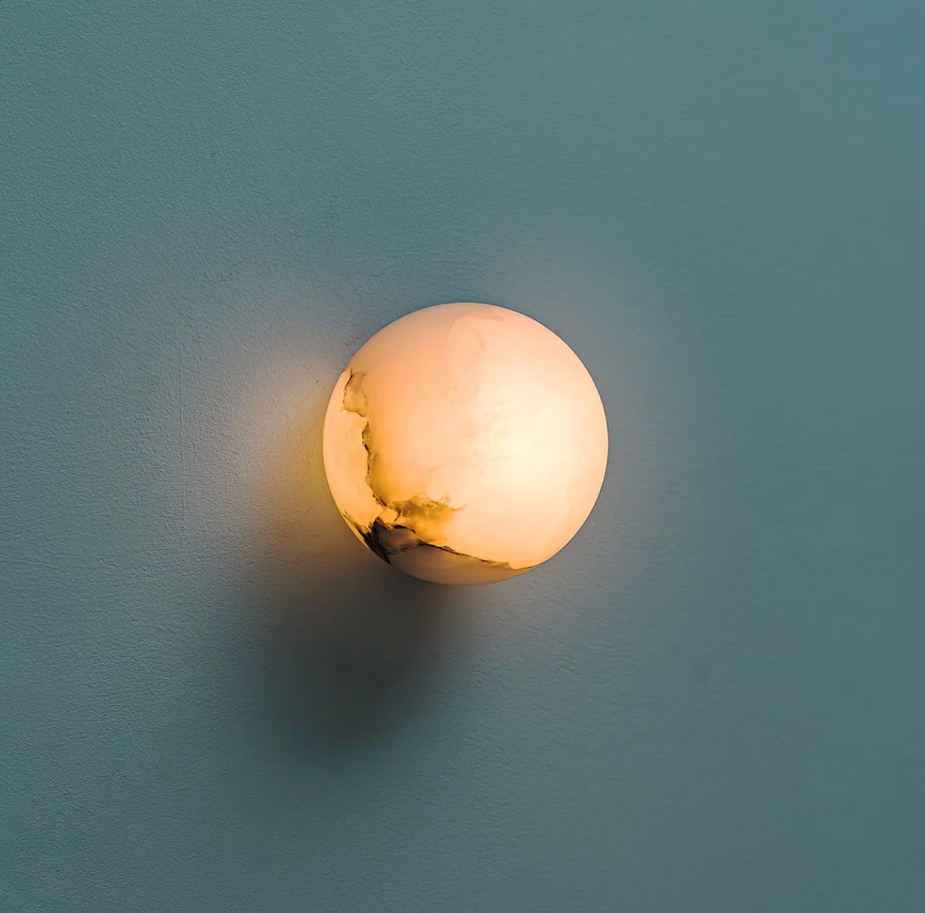 Elegancki kinkiet ścienny w formie świetlistej kuli inspirowanej naturalnym marmurem to wyjątkowy element dekoracyjny do nowoczesnych i minimalistycznych wnętrz. Subtelne użylenie klosza nadaje lampie luksusowego charakteru, a miękkie, rozproszone światło tworzy przytulną atmosferę w salonie, sypialni, korytarzu lub kuchni.