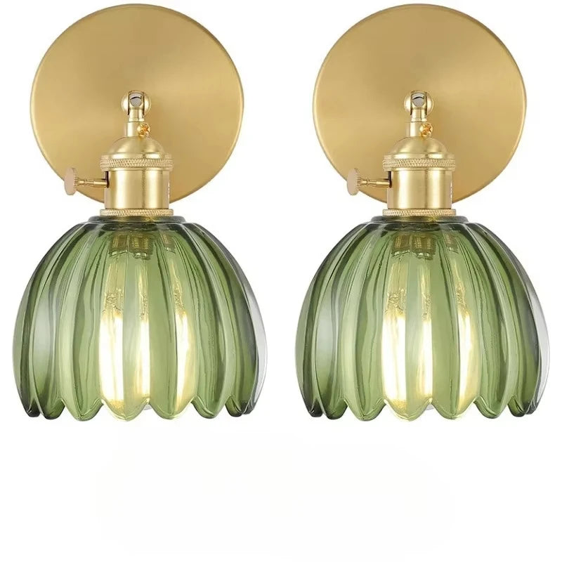 Lampa ścienna retro w kształcie kwiatu tulipana – kinkiet ze szklanym kloszem i złotym wykończeniem