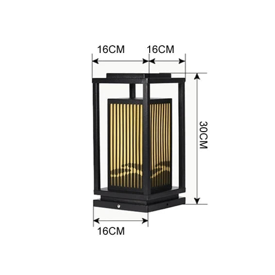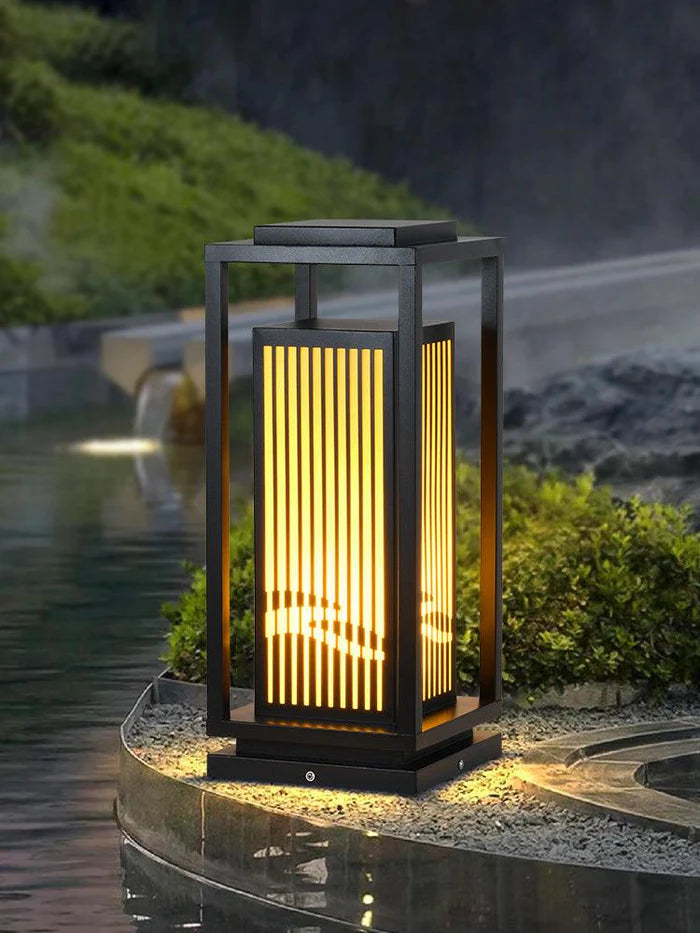 Stylowa lampa ogrodowa stojąca w formie geometrycznej latarni to połączenie elegancji i funkcjonalności. Jej unikalny design z pionowymi przesłonami tworzy wyjątkowy efekt świetlny, nadając przestrzeni ogrodowej, tarasowi czy ścieżce niepowtarzalny klimat.