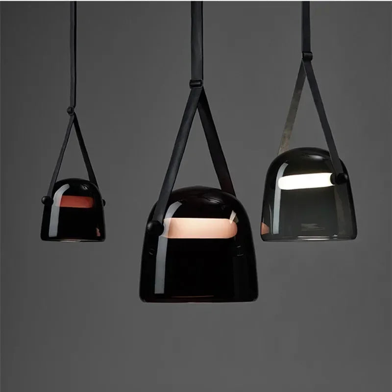 Nowoczesna lampa wisząca ze szklanym kloszem i paskiem