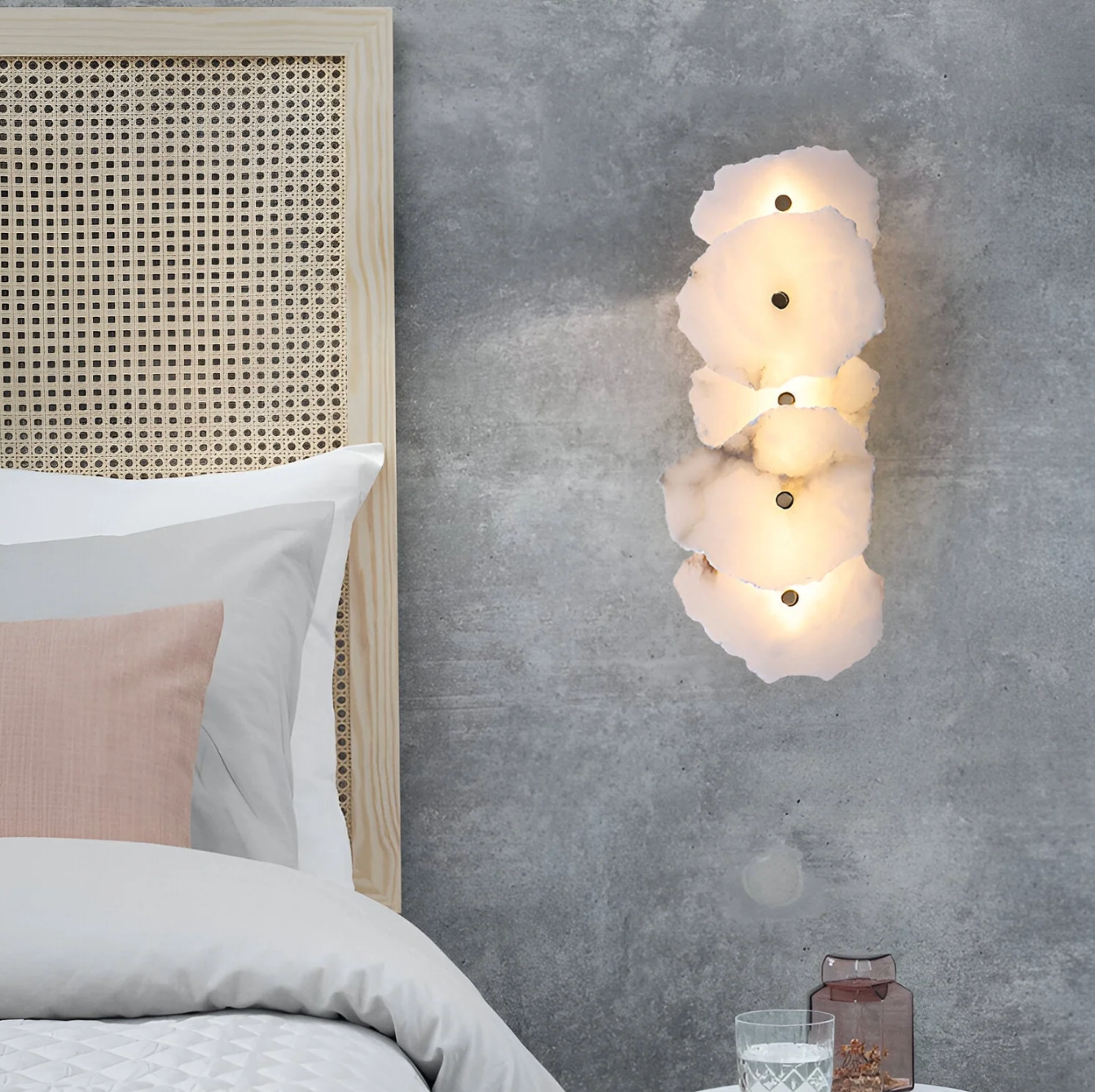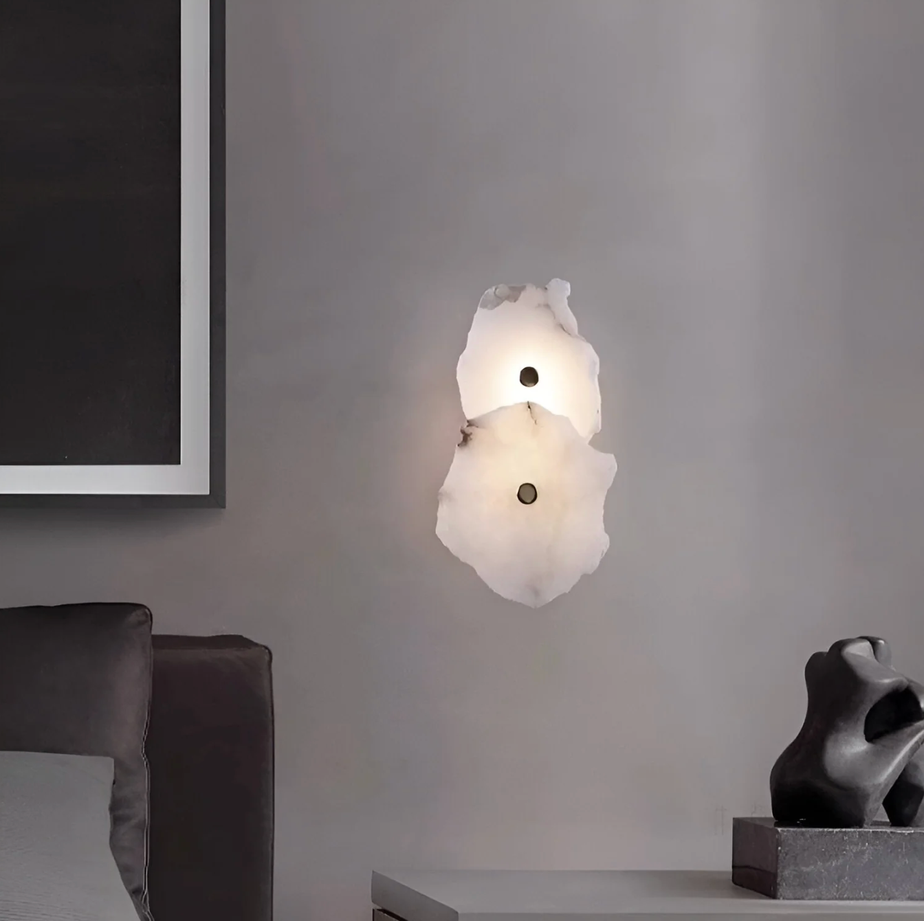Delikatnie rozproszone światło wydobywa subtelną fakturę powierzchni, tworząc przytulny, nastrojowy klimat. To doskonały wybór do nowoczesnych, minimalistycznych oraz luksusowych wnętrz, gdzie oświetlenie pełni również funkcję dekoracyjną.
