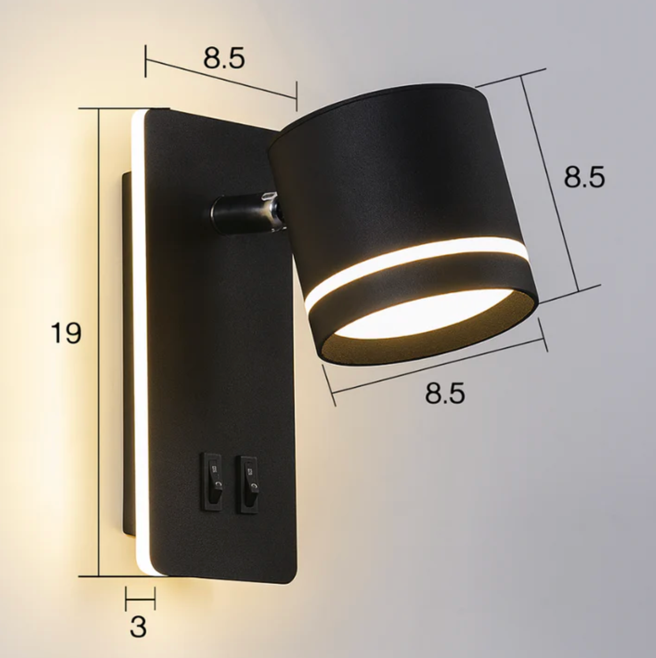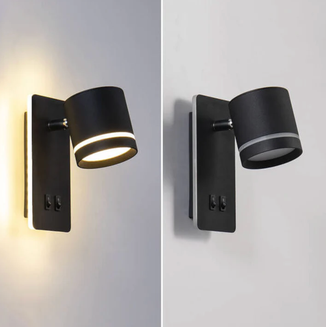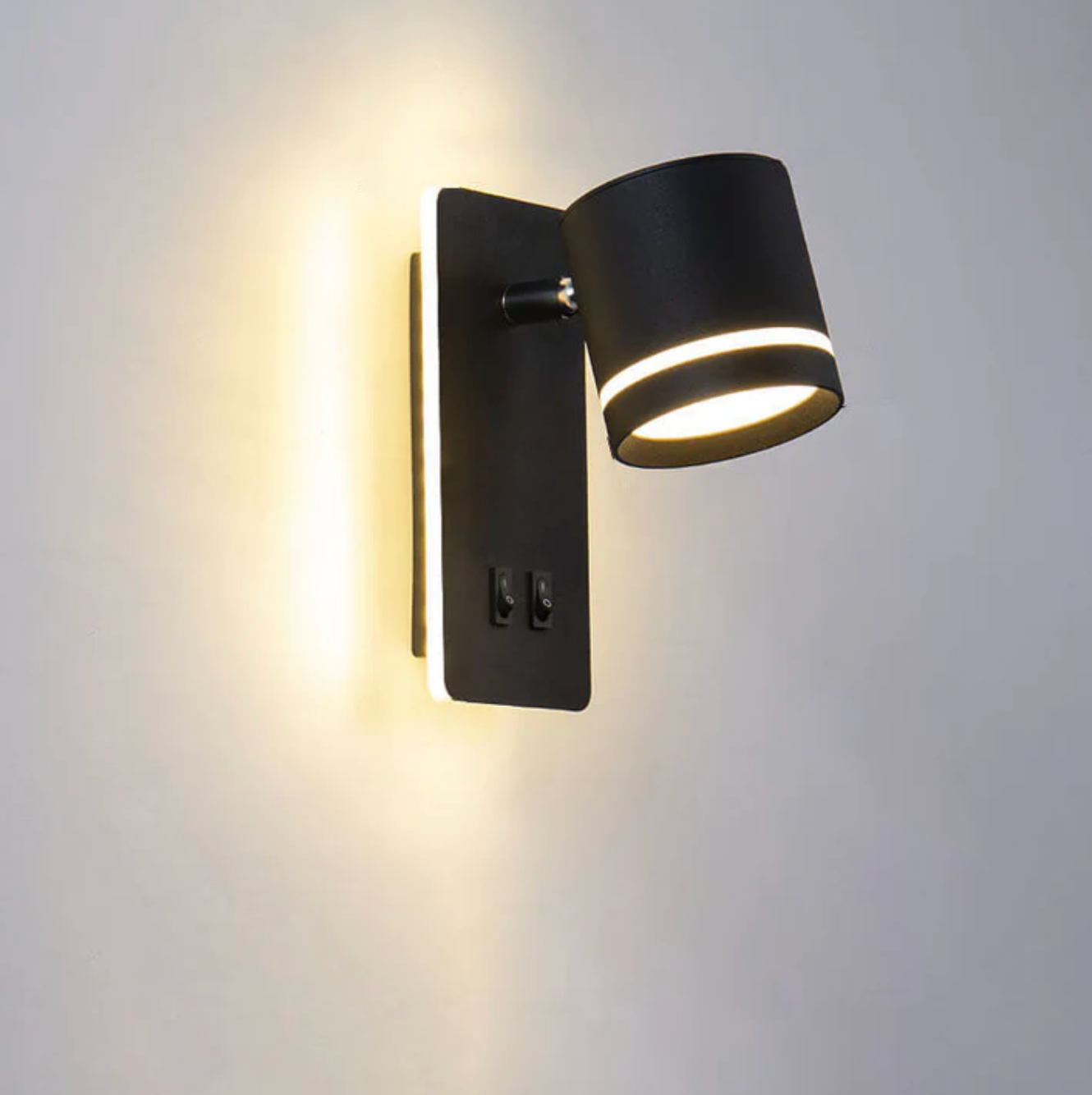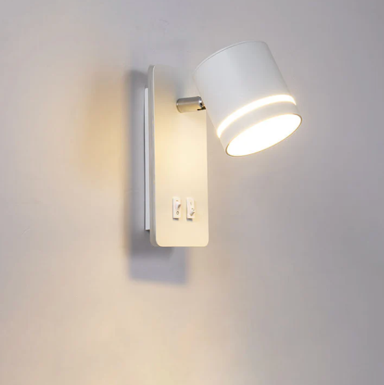 Nowoczesny kinkiet ścienny LED z regulowanym reflektorem i podwójnym włącznikiem